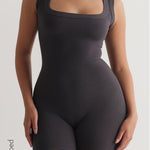 Fundamental Micro-Ribbed Romper, thigh-length design with a mid-back scoop. No zippers needed, this one-piece solution is to be taken wherever you go.