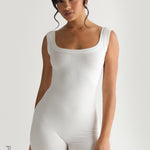 Fundamental Micro-Ribbed Romper, thigh-length design with a mid-back scoop. No zippers needed, this one-piece solution is to be taken wherever you go.