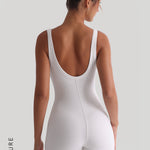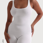 Banded Scoop Neck Romper - White
