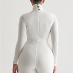 Welcoming our sleek "Vital Romper" this fall, as a closet staple for a chic comfortable look. Our double-lined rompers, create a clean, wrinkle-free experience. The hidden zipper along the back ties in the sculpted look, leaving the long sleeves and turtleneck to effortlessly hug your body. Dress it up with your favorite fall accessories to bring this romper to life.