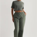 Relaxed Fit Custom-Patch Crop Top - Forest Green
