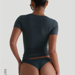 Known as our No-Bra Tee, the Mist Short Sleeve T-Shirt is our best-selling piece. Crafted from our Signature Fabric, it combines soft support with breathable comfort. Designed to fit close to the body, it offers natural stretch and gentle shaping. The clean silhouette and lightweight feel make it a versatile staple for everyday wear.