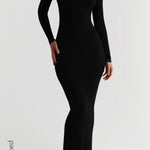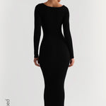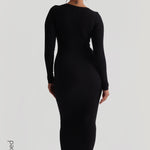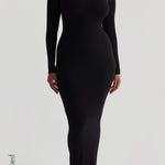 Scooped Micro-Ribbed Maxi Dress - Black