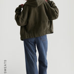 The Structured Bomber Jacket is a hooded bomber-style jacket that features a zip-up and high neckline. To ensure it maintains its structure and durability, it was made in a thick, heavyweight fabric that sits comfortably on the skin and features a horizontal seam across the chest.