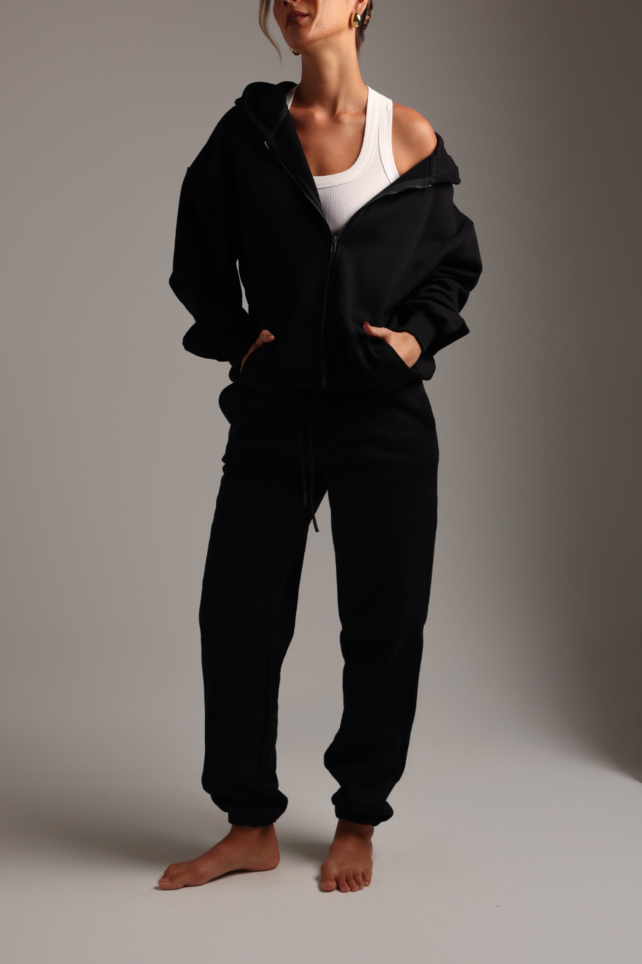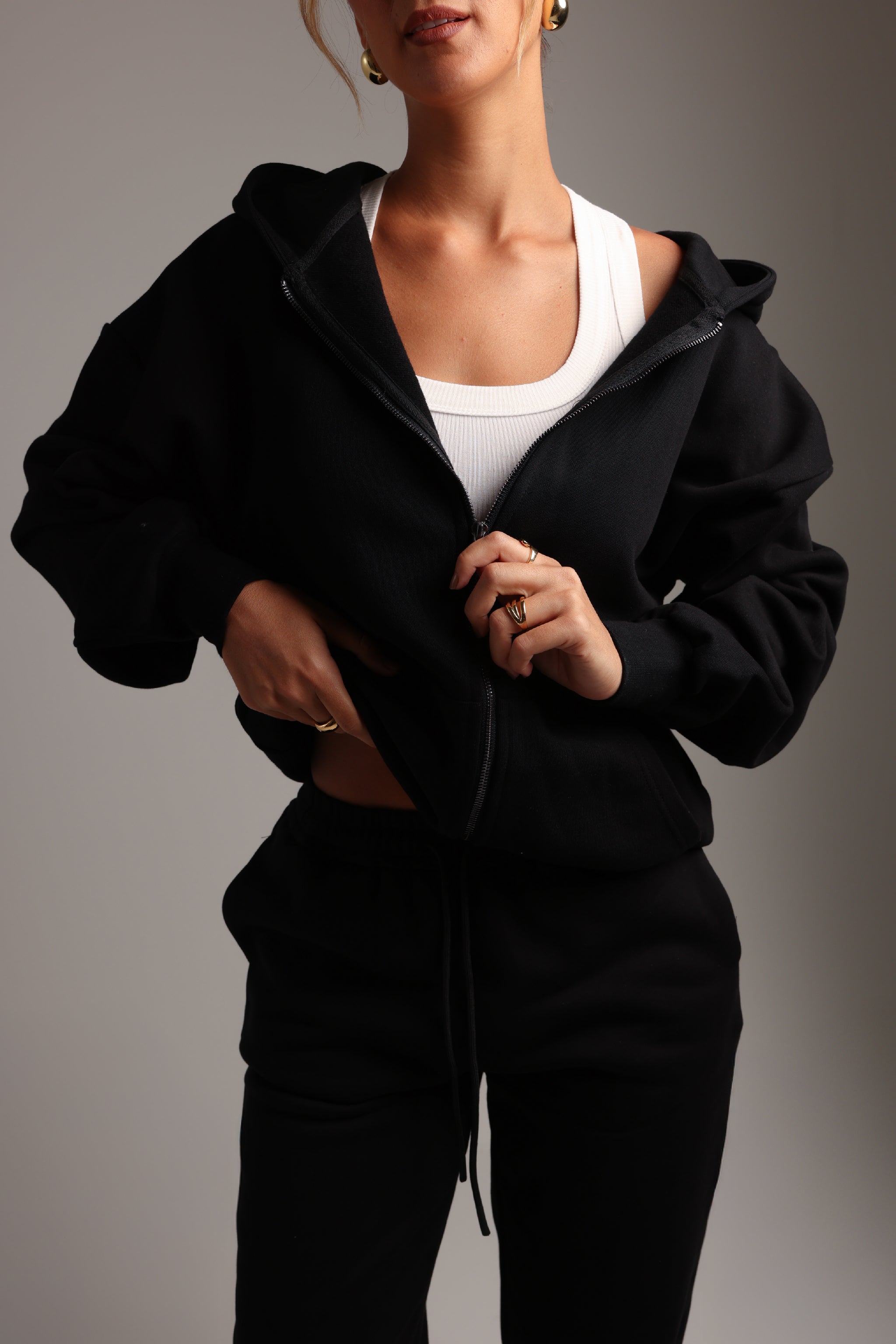 Boyfriend Zip-Up Hoodie - Black