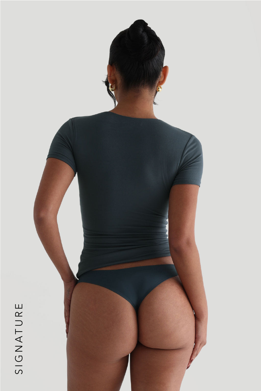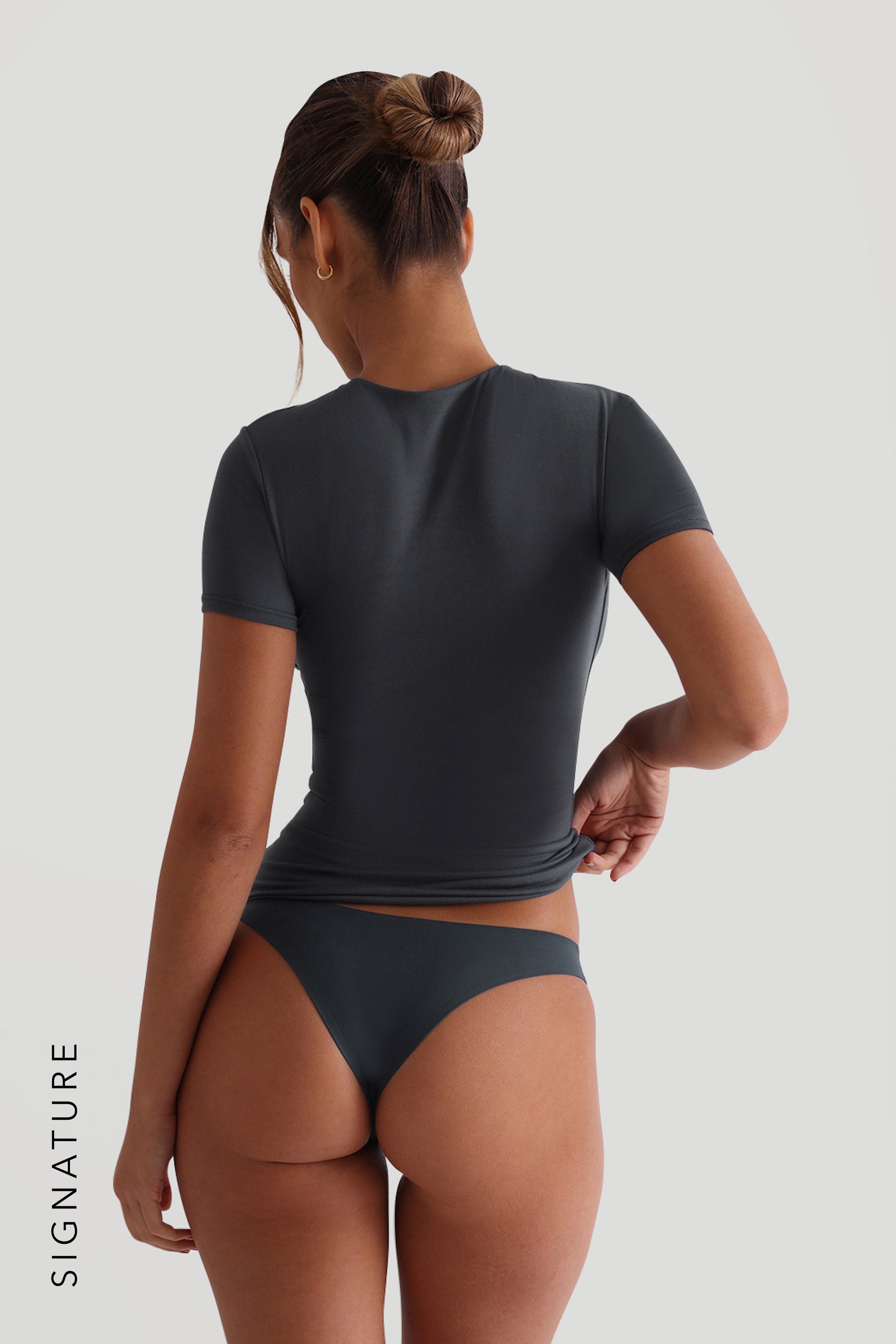 Known as our No-Bra Tee, the Mist Short Sleeve T-Shirt is our best-selling piece. Crafted from our Signature Fabric, it combines soft support with breathable comfort. Designed to fit close to the body, it offers natural stretch and gentle shaping. The clean silhouette and lightweight feel make it a versatile staple for everyday wear.