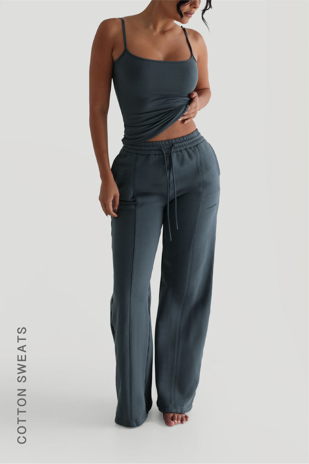 A modern take on classic sweatpants, the Structured Wide Leg Sweatpants are crafted from a heavyweight fabric designed to hold their shape. The wide-leg silhouette offers clean lines and a relaxed drape, with three inseam lengths to suit all heights.