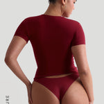 The Mist Short Sleeve T-Shirt in Wine is a limited edition piece from our Valentine's '25 collection. Known as our No-Bra Tee, it’s crafted from Signature Fabric that gently smooths and supports, creating a flawless look without the need for a bra. Designed for the woman who craves easy, elevated style, the Mist T-Shirt is a versatile piece that feels as good as it looks, moving seamlessly with you through every moment.