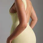 Highlights: single lined, vertical ribbed pattern, boat neckline, deep drop back