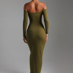 Form Ribbed Off Shoulder Maxi Dress - Olive