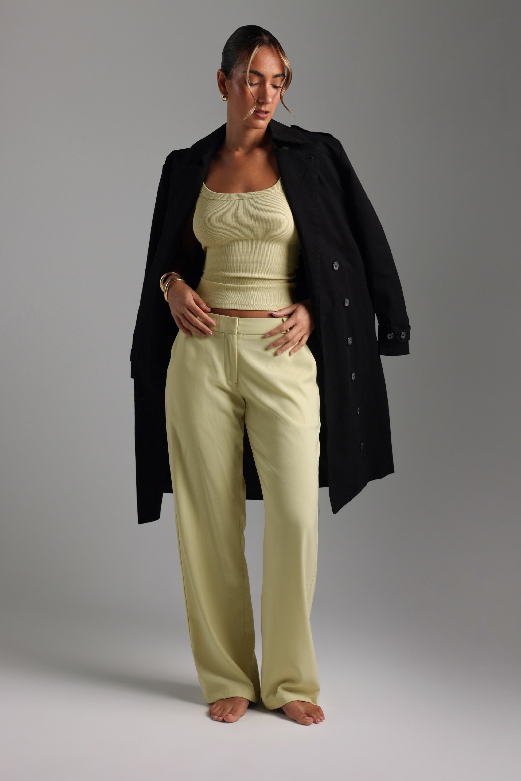 A refined essential, The Modern Straight-Leg Trousers offer a clean, tailored fit with a straight silhouette that falls effortlessly from hip to hem. Designed with a mid-to-low rise waist and subtly structured, they hold their shape while allowing for ease of movement.