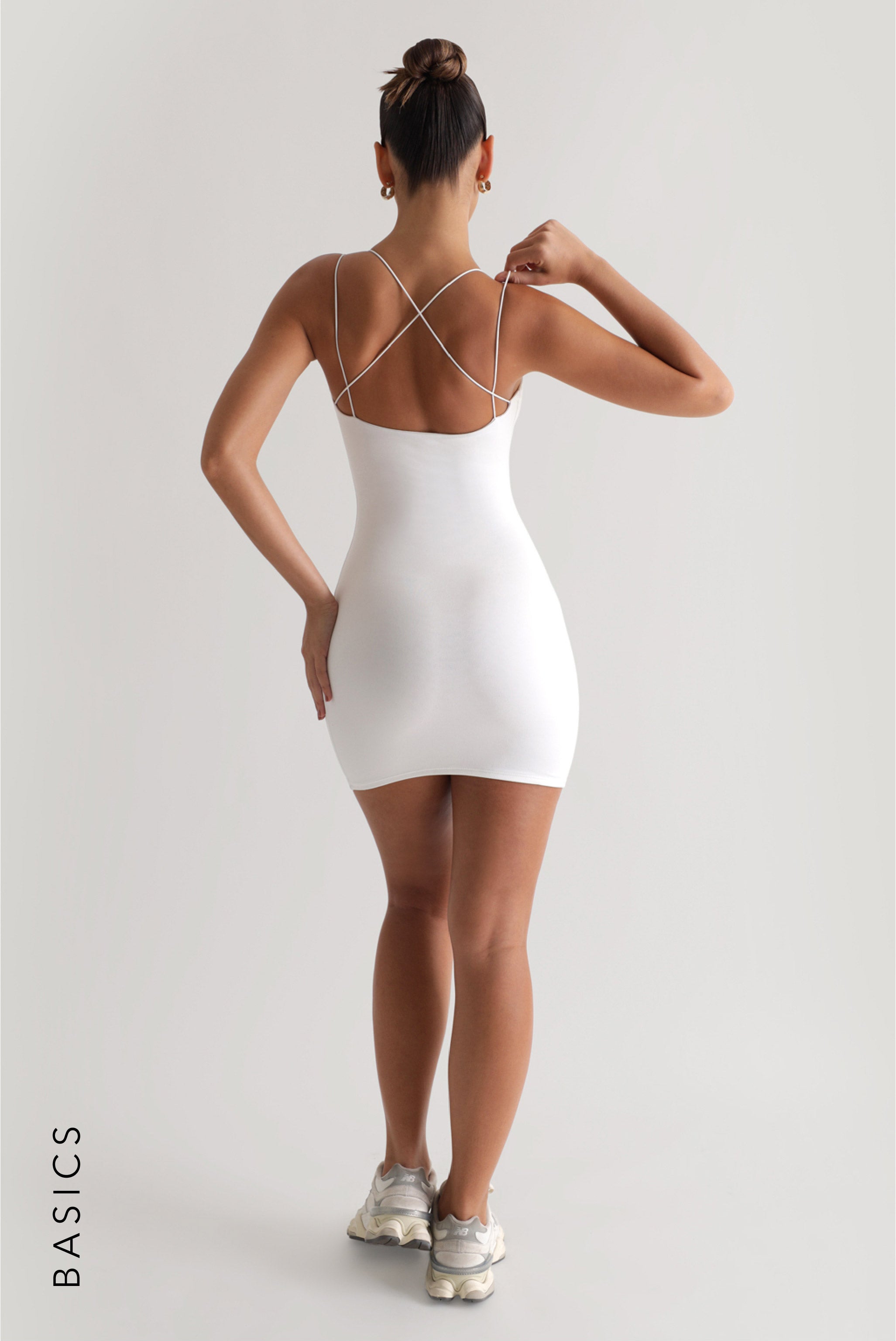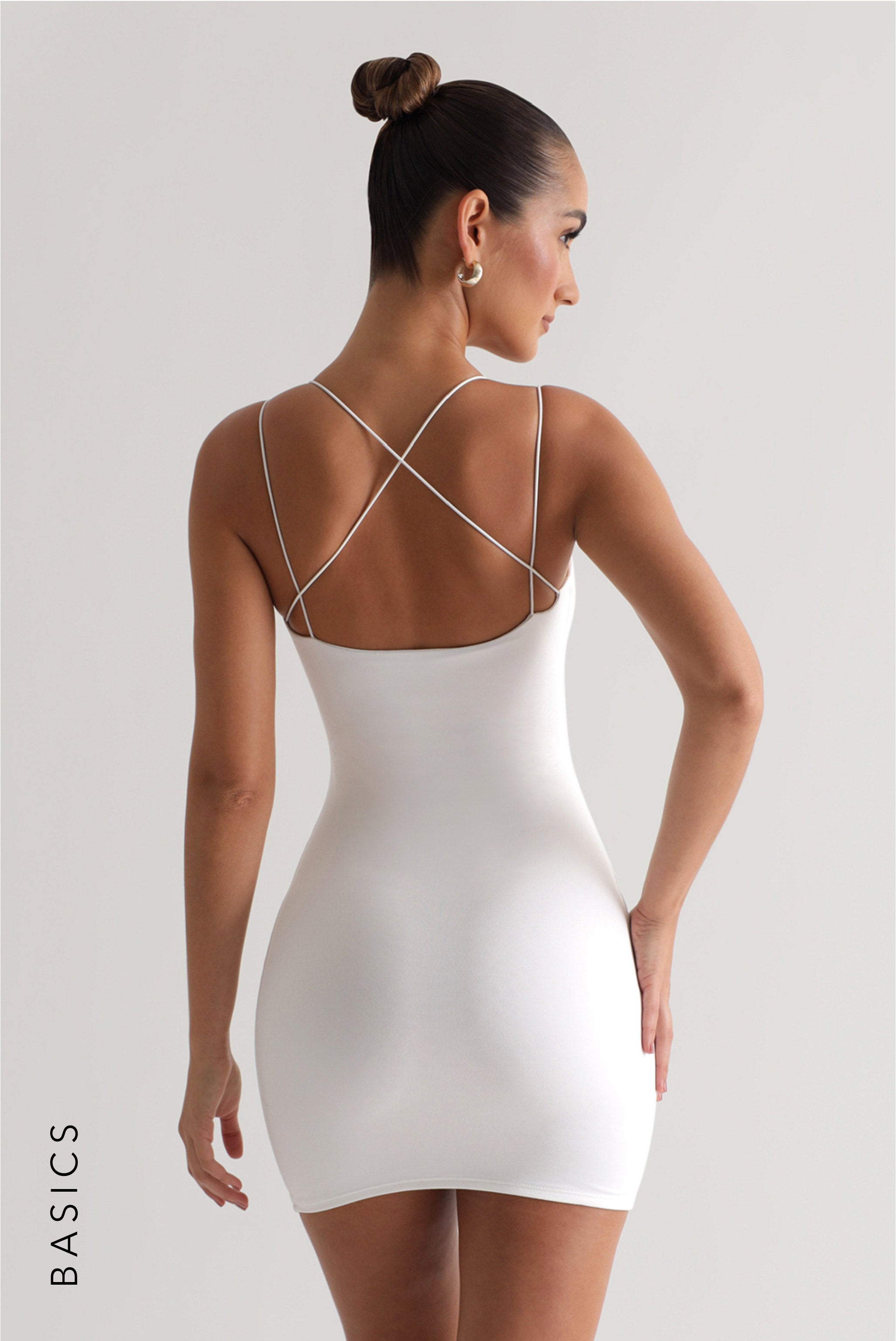 String Crossback Mini Dress thigh length mini dress with supportive, cross back straps. Classic, timeless, and versatile, this dress can be dressed up and down for any occasion you need.