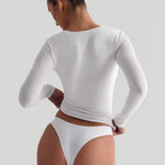 Made in our Signature Fabric for added support, the U-Shape Long Sleeve T-Shirt features a one-inch banding along the scooped neckline to flatter any chest size.