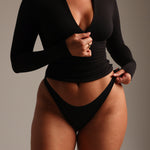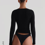Zip-Up Long Sleeve T-Shirt - Black