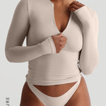 Zip-Up Long Sleeve T-Shirt - Buttercream