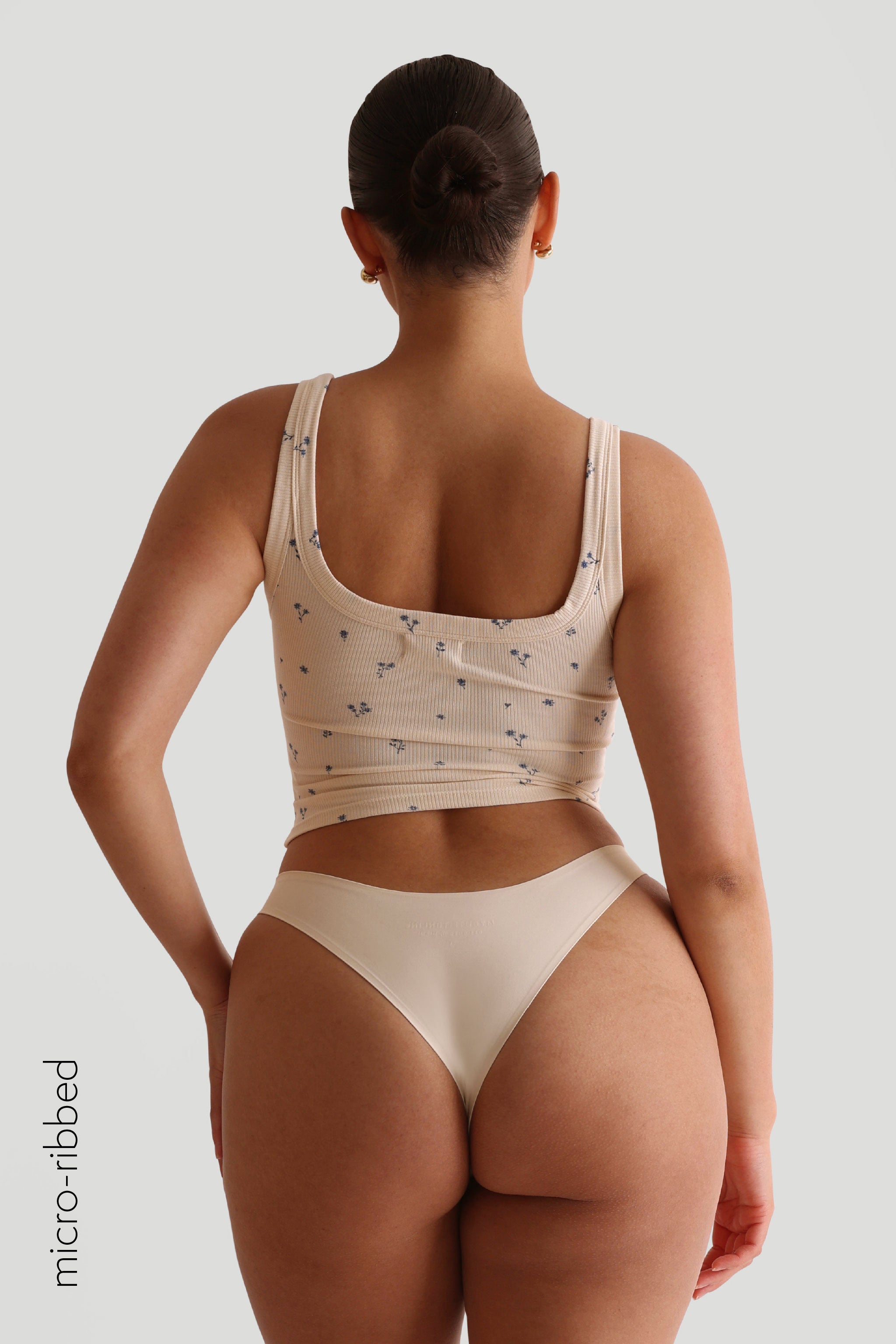 Micro-Ribbed Fabric: high stretch, low compression, slightly sheer (lighter colors)