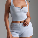 Made for the moments between wake and rest. The Air-Sleep Ease Shorts feel featherlight against the skin, with a soft waistband that never clings. Whether you're unwinding or catching the morning light, they offer a quiet kind of comfort—easy, delicate, and just for you.