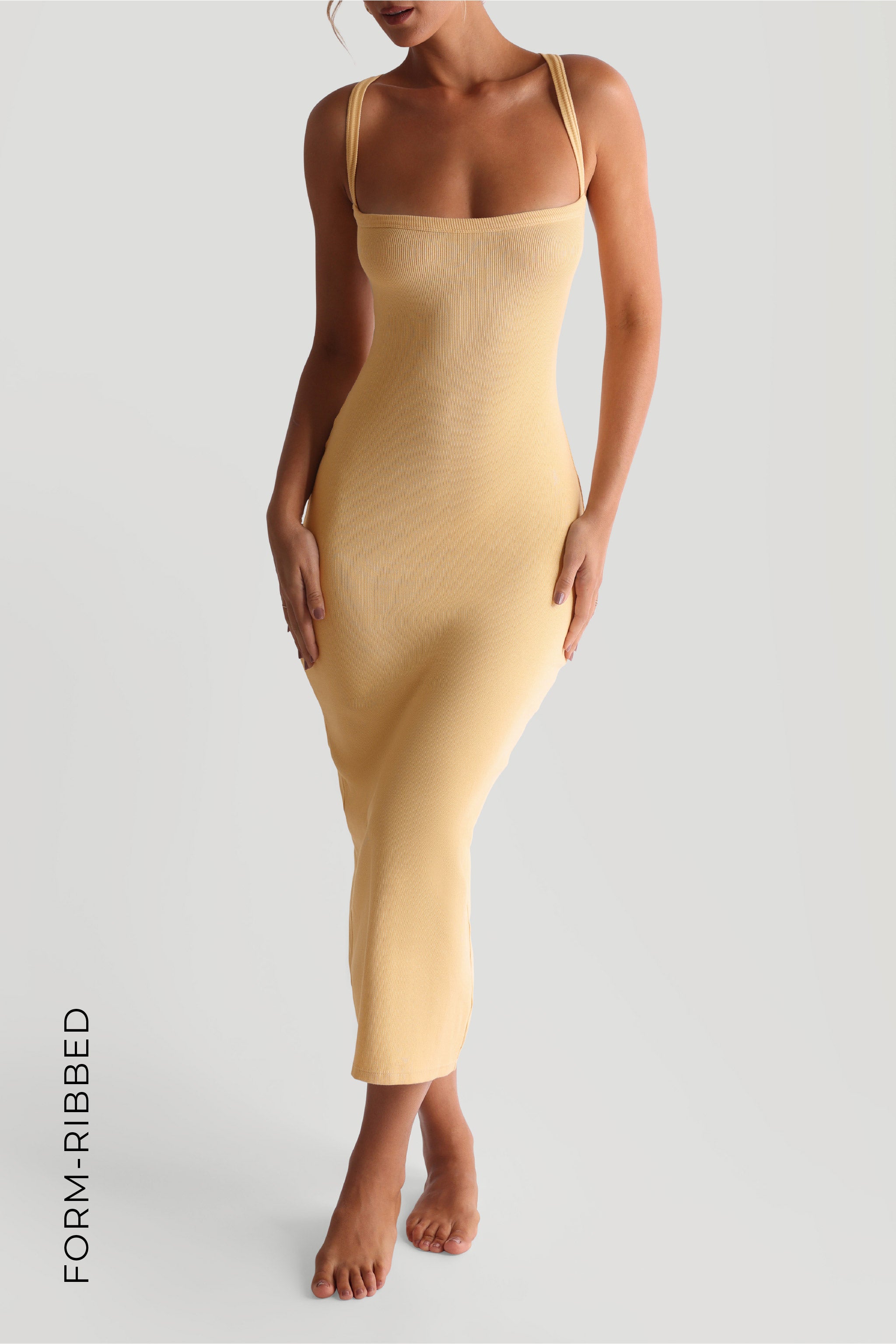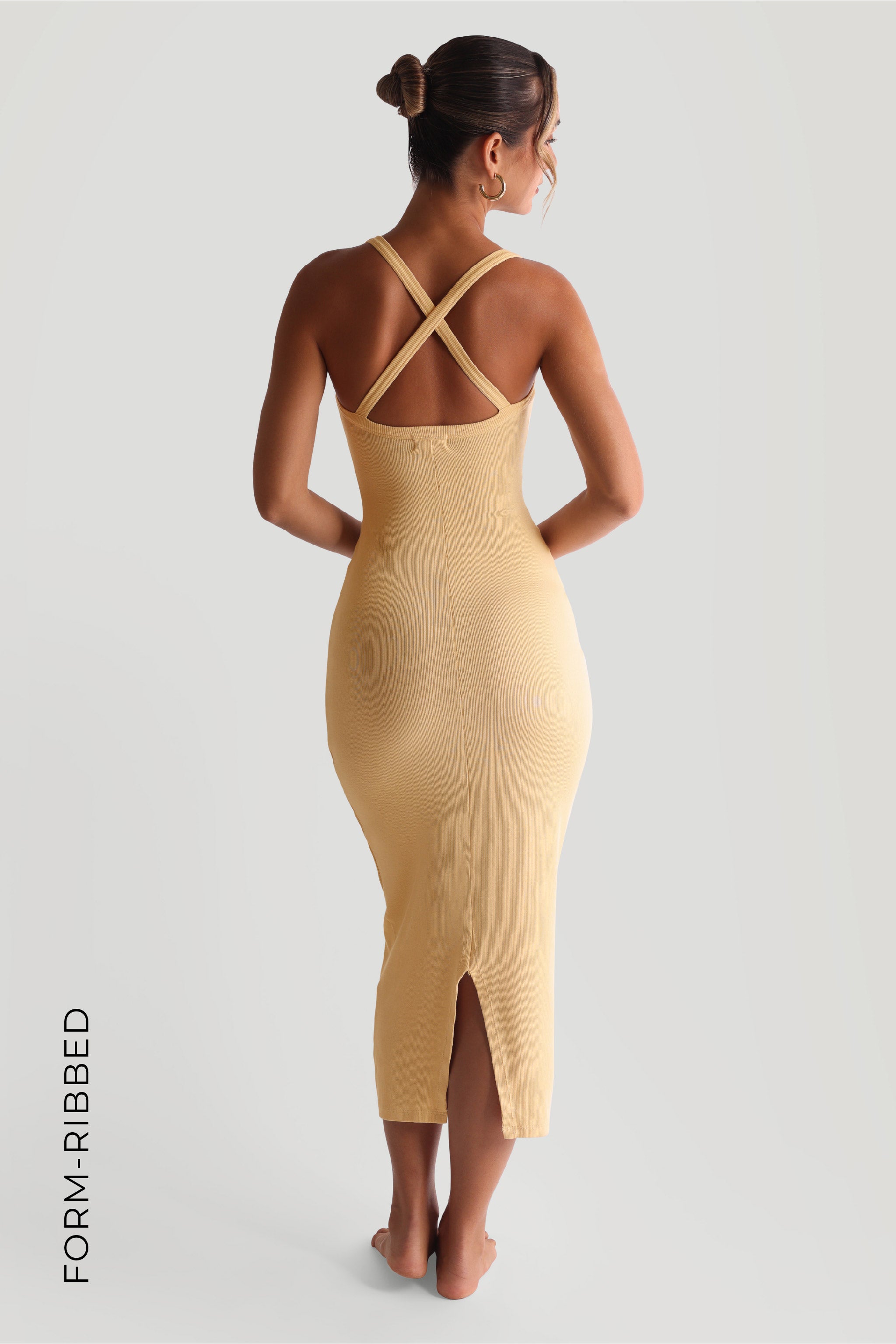 Inspired by the tank, the Form-Ribbed Cross-Back Midi Dress pairs a refined ribbed texture with our best-selling cross-back detail for an understated yet elevated look. Designed with a smooth, body-skimming fit, it offers comfort and quiet confidence—perfect for warm days, relaxing evenings, or anything in between.