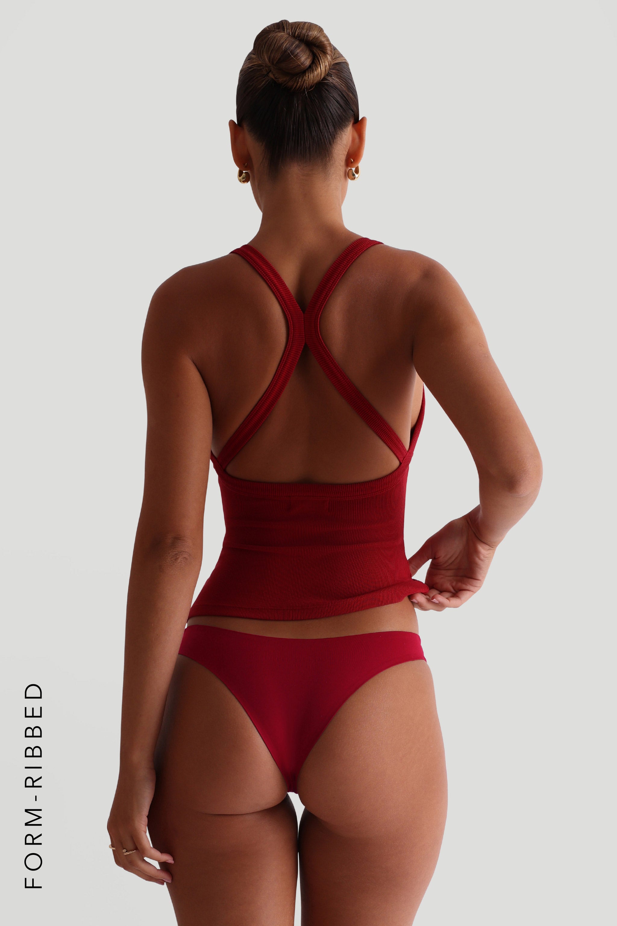 Form-Ribbed Plunge Split-Back Tank Top - Pomegranate