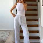 Highlights: wide-leg, adjustable drawstring, side pockets