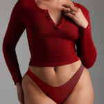 Air-Sleep Henley Long Sleeve Top - Merlot