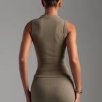 Form-Ribbed Button-Down Tank Top - Latte Taupe