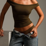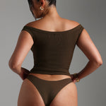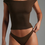 Form-Ribbed Off Shoulder Top - Brown Sugar