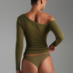 Form-Ribbed Gallerie Long Sleeve Top - Olive