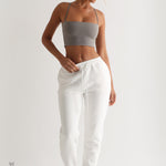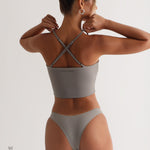 Thin Strap Athleisure Crop Top bandeau-esque crop top with adjustable cross-back straps. This simple yet comfortable top is essential for everyday effortless looks.