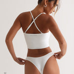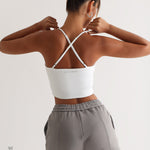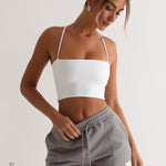 Thin Strap Athleisure Crop Top bandeau-esque crop top with adjustable cross-back straps. This simple yet comfortable top is essential for everyday effortless looks.
