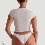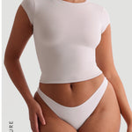 Made in our Signature Fabric, the Baby Tee is a mid-length crop top that features cap sleeves and a high neckline.