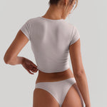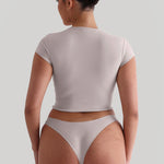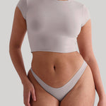 Made in our Signature Fabric, the Cropped Baby Tee is the shorter version of our Baby Tee. It features the same cap sleeves and a high neckline.