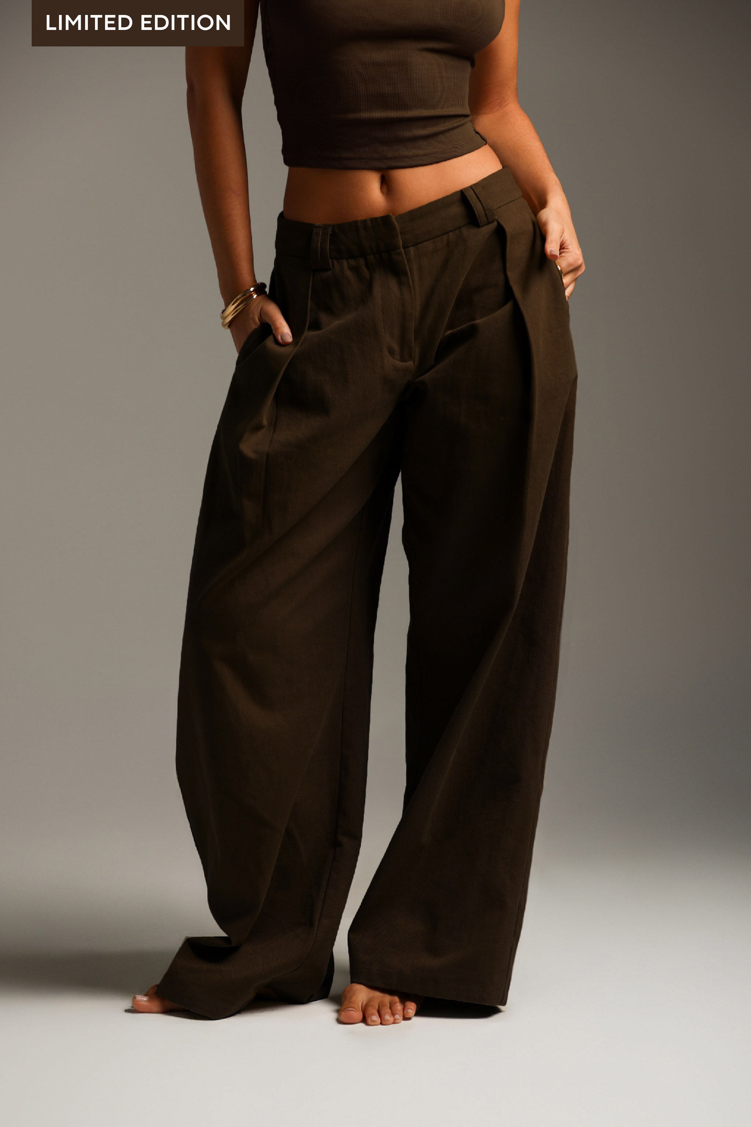 The Meridian Wide-Leg Trousers - Brown Sugar