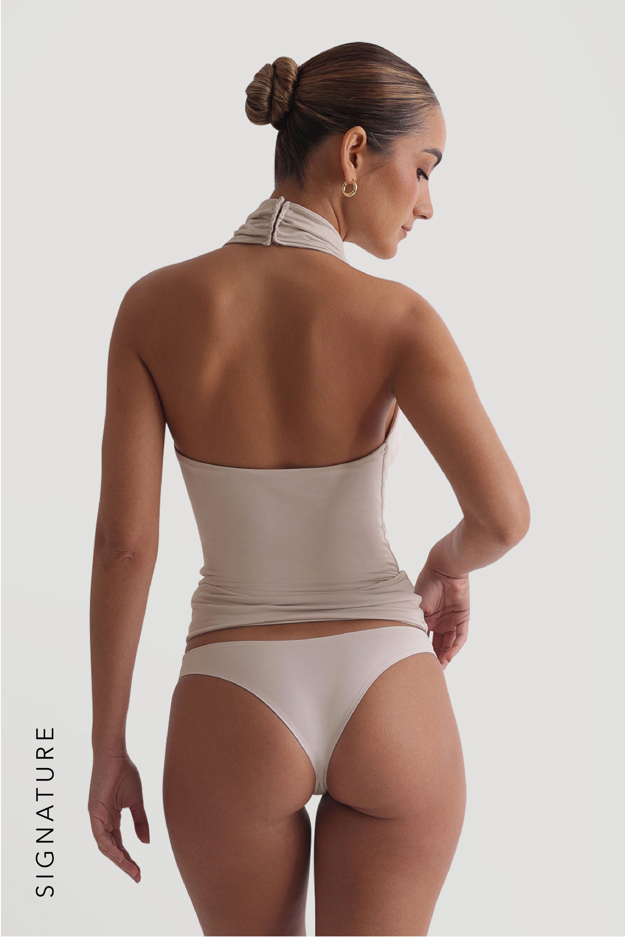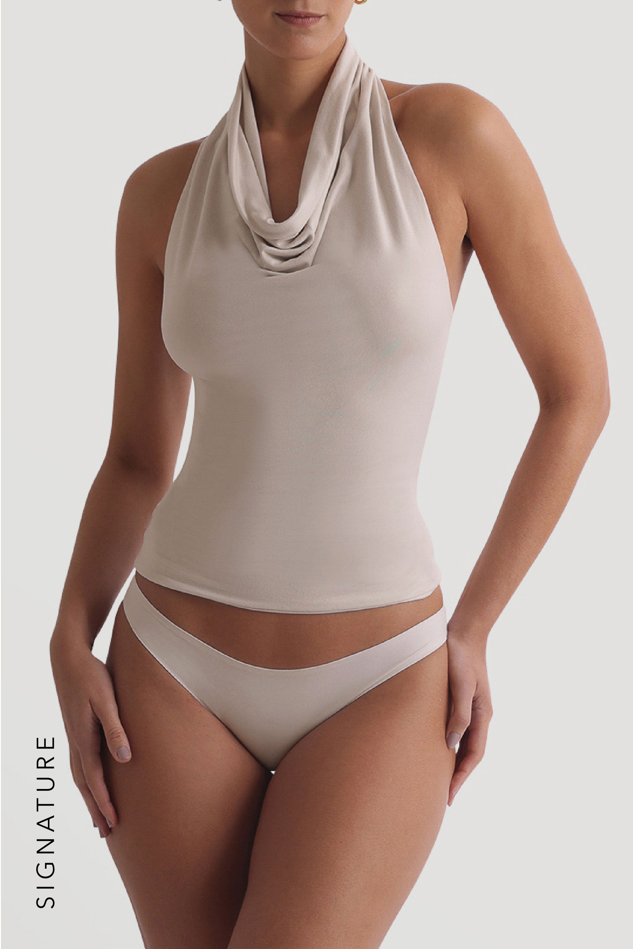 Timeless Cowl Neck Full-Length Top - Light Oat