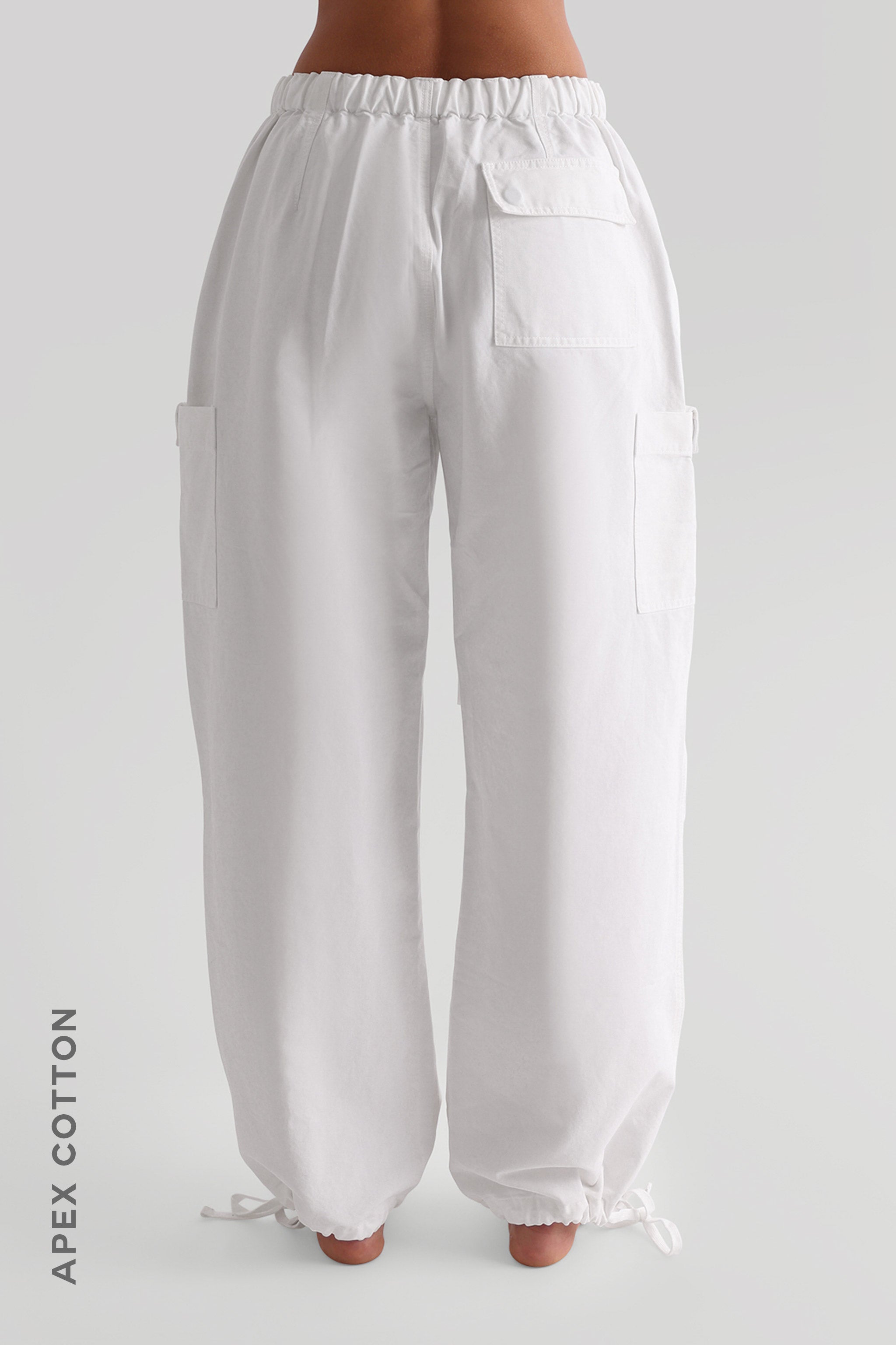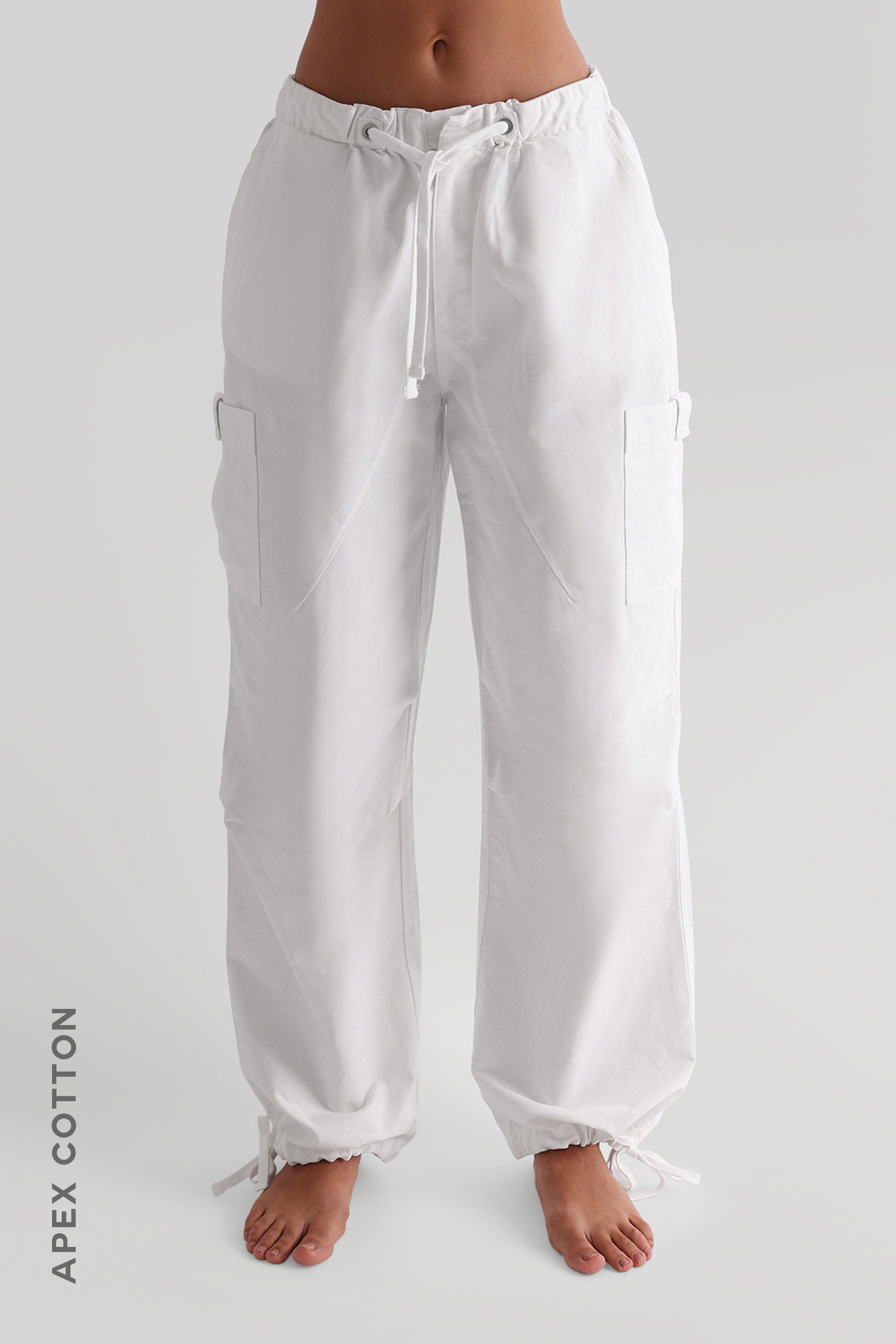 Pantalon cargo baggy essentiel de style utilitaire avec cordon de serrage réglable à la taille et à la cheville. Dotés de poches cargo, nos cargos robustes allient parfaitement confort et style avec notre nouveau tissu en coton Apex.