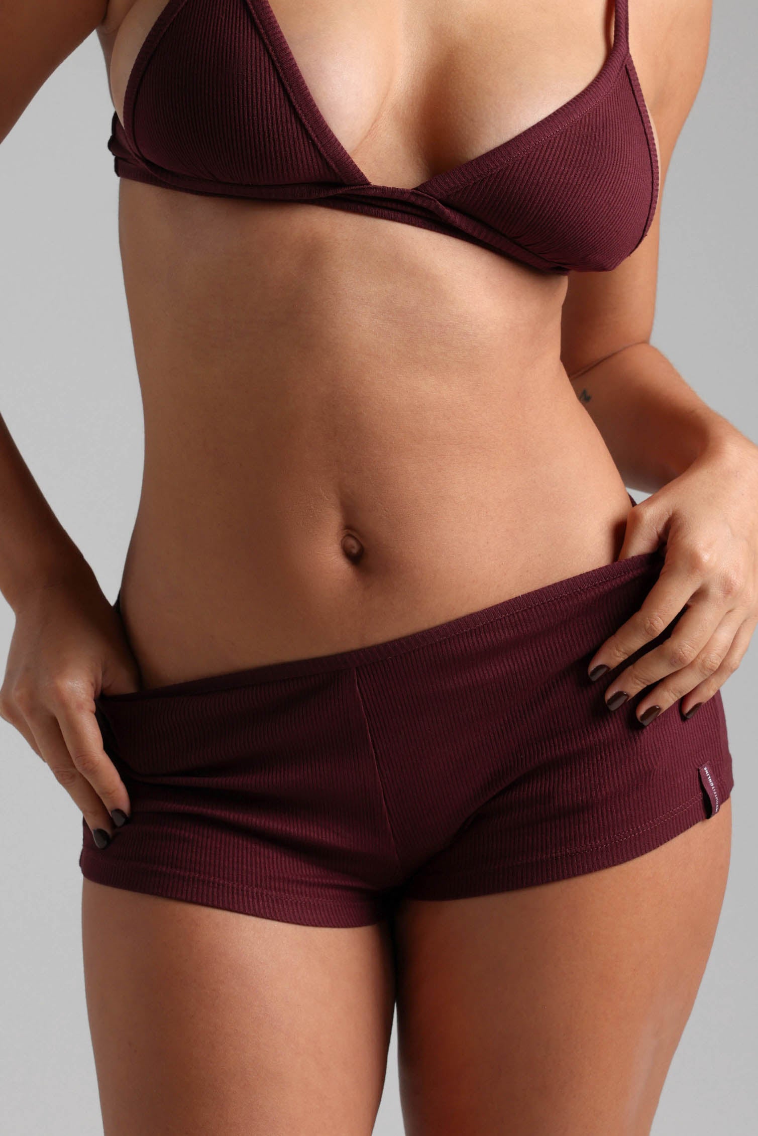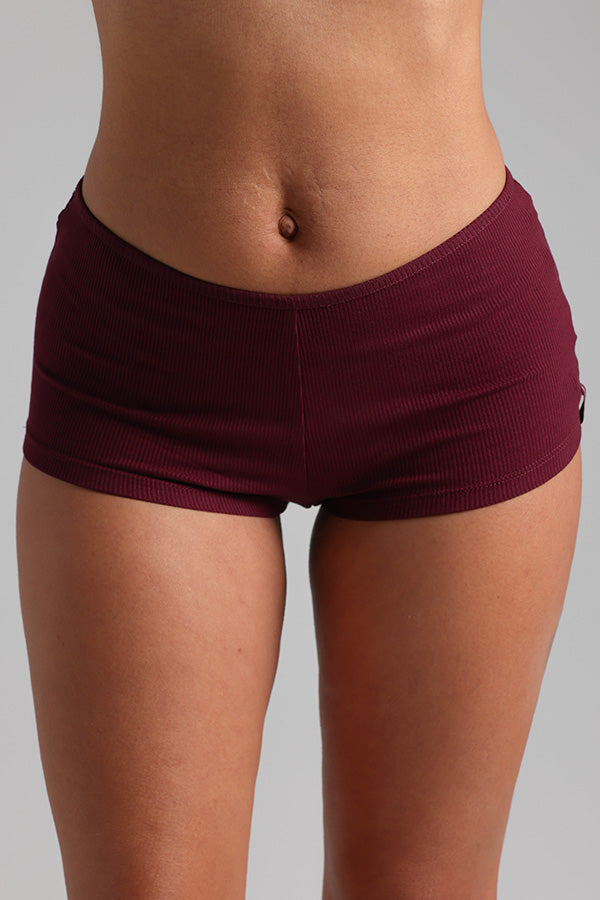 Classic Micro-Ribbed Mini Shorts - Black Cherry