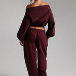 Highlights: heavyweight, pleats on elbows, off shoulder neckline, cropped