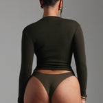 Our Form-Ribbed Button-Up Long Sleeve combines a tailored fit with a textured ribbed design for effortless style and comfort. Designed with a front button-up closure, it offers a polished look that transitions seamlessly from day to night.