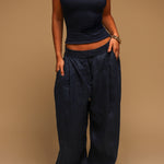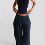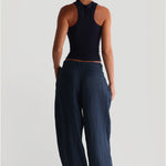 The Ivy Wide-Leg Linen Trousers - Navy