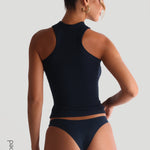 A modern take on a classic silhouette, the Dual Frame Tank Top features a mirrored racer-style cut at both the front and back for a sculpted, balanced look. Crafted in a smooth, form-hugging fabric, it offers a flattering fit with subtle edge. Sleek, minimal, and made to move with you—this is effortless versatility, redefined.