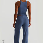 Introducing the Micro-Ribbed Straight-Leg Pants, this piece offers a refined silhouette with an effortlessly sophisticated feel. The mid-rise waistband contours the waist, while the sleek, elongated fit adds a touch of understated elegance to your lounging experience.