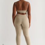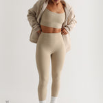 High Waisted Athleisure Leggings - Beige
