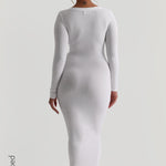 Scooped Micro-Ribbed Maxi Dress - White