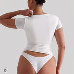 Inspired by our long-sleeve version, the V-Shape Short Sleeve T-Shirt offers the same one-inch banding along the v-shaped neckline to flatter and support all chest sizes.